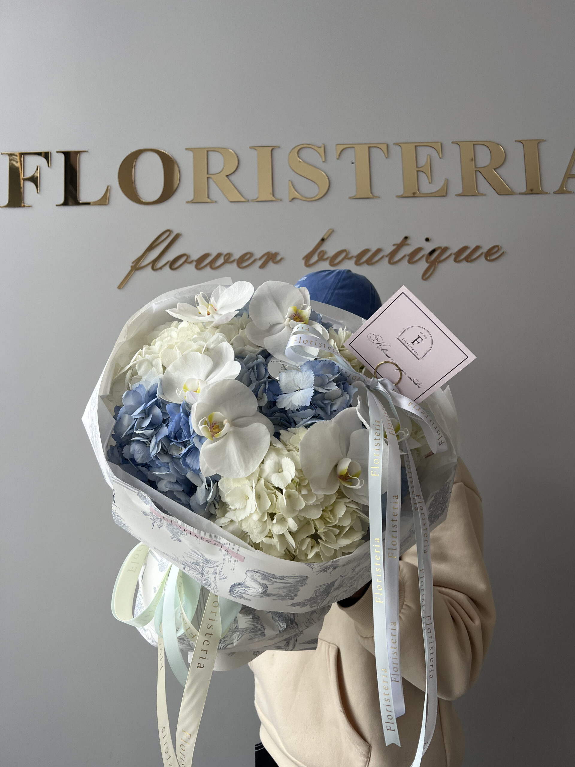 Будьте першим, хто залишив відгук на “Біло блакитний букет з гортензій та орхідей”