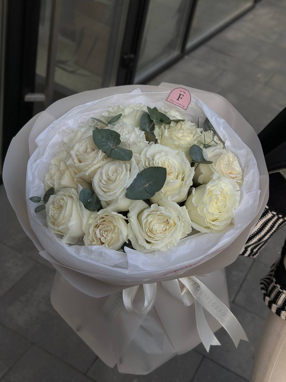 Букет з 15 троянд Playa Blanca та евкаліпту