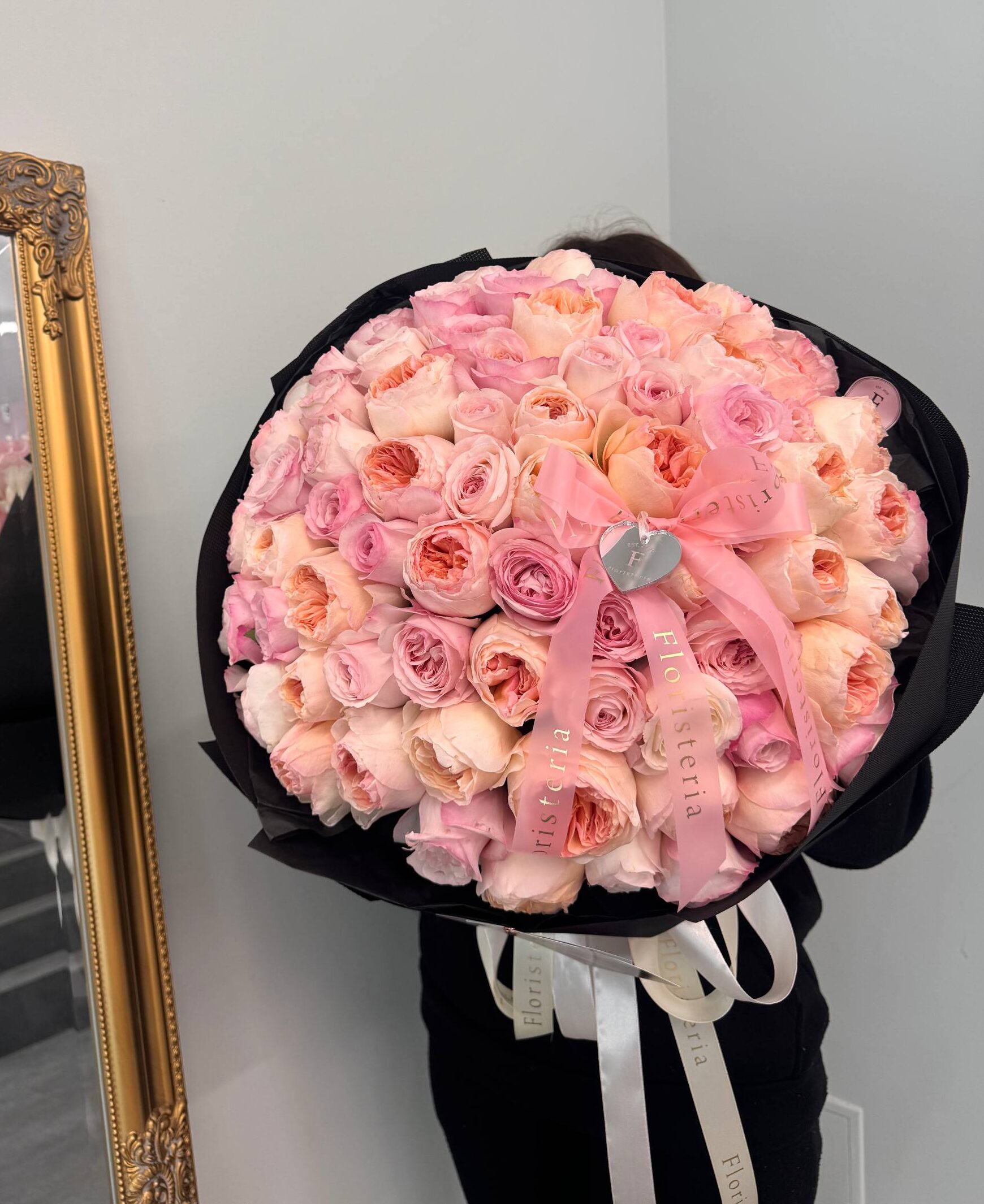 Букет з 77 садових піоновидних троянд
