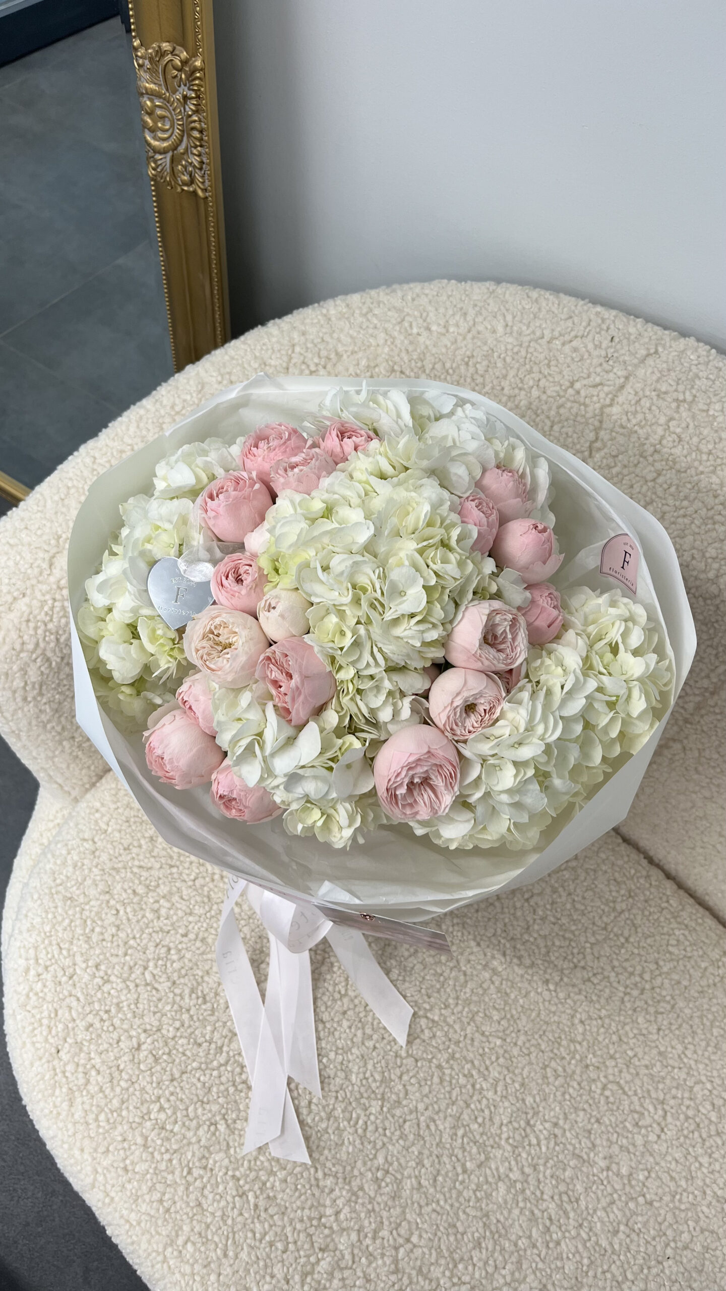 Будьте першим, хто залишив відгук на “Букет з гортензій та піоновидних троянд”