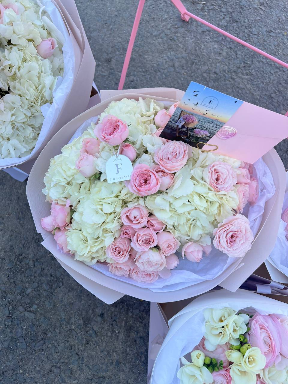 Будьте першим, хто залишив відгук на “Букет з кущової троянди та білих гортензій”