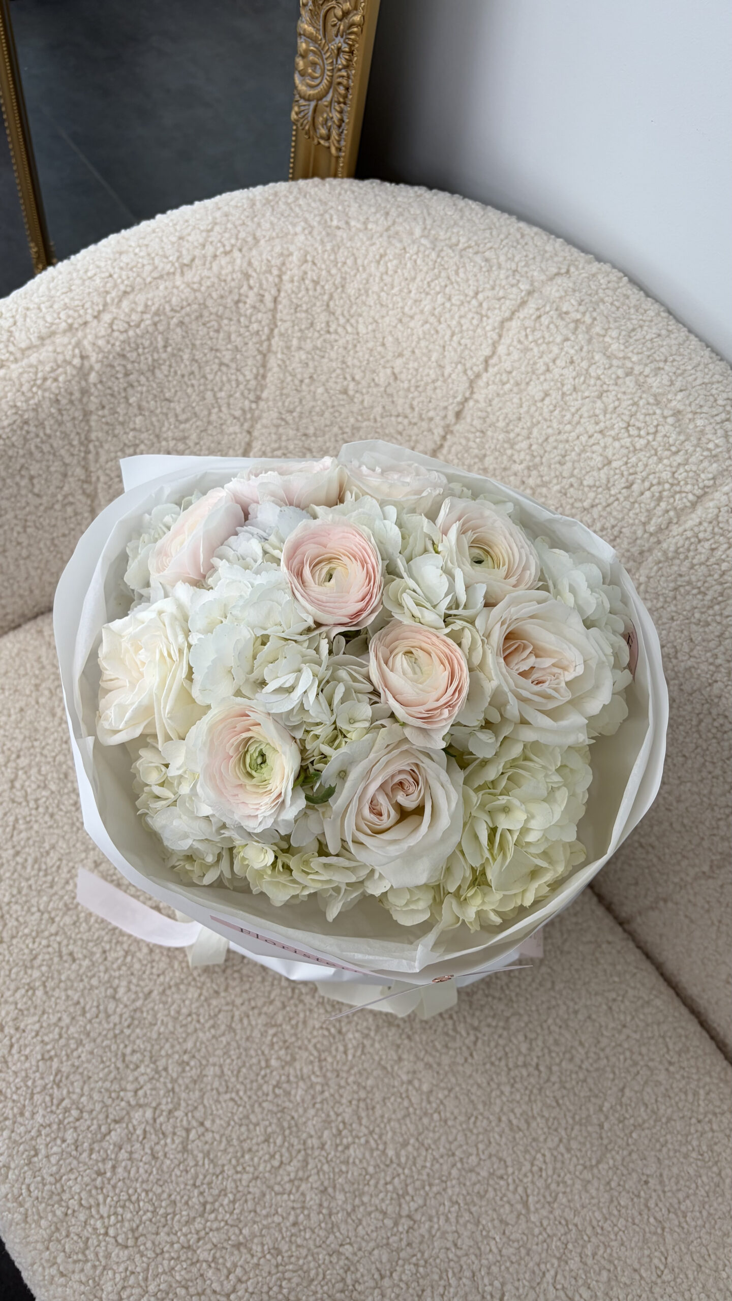 Будьте першим, хто залишив відгук на “Букет з ранункулюсів, піоновидних троянд та гортензій”