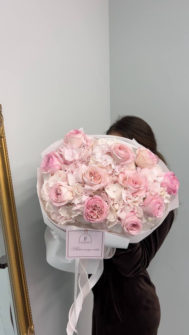 Будьте першим, хто залишив відгук на “Букет з садової троянди та ніжно рожевої гортензії”