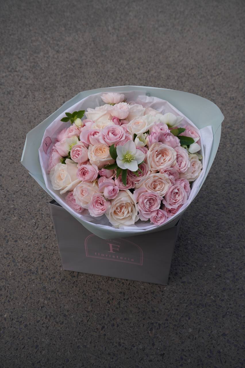 Букет з троянд та хелеборусу