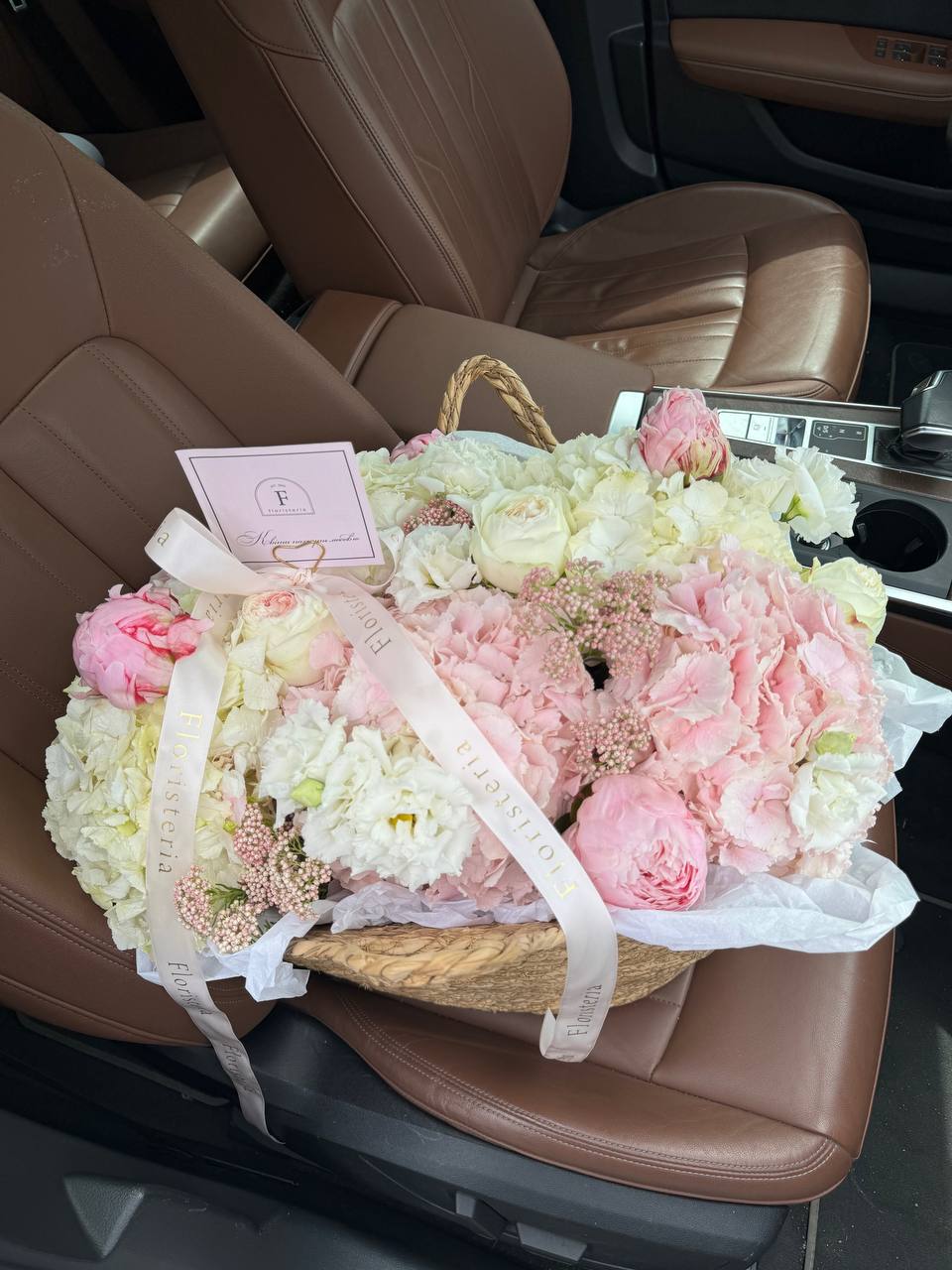 Композиція в кошику в рожево-білій колористиці