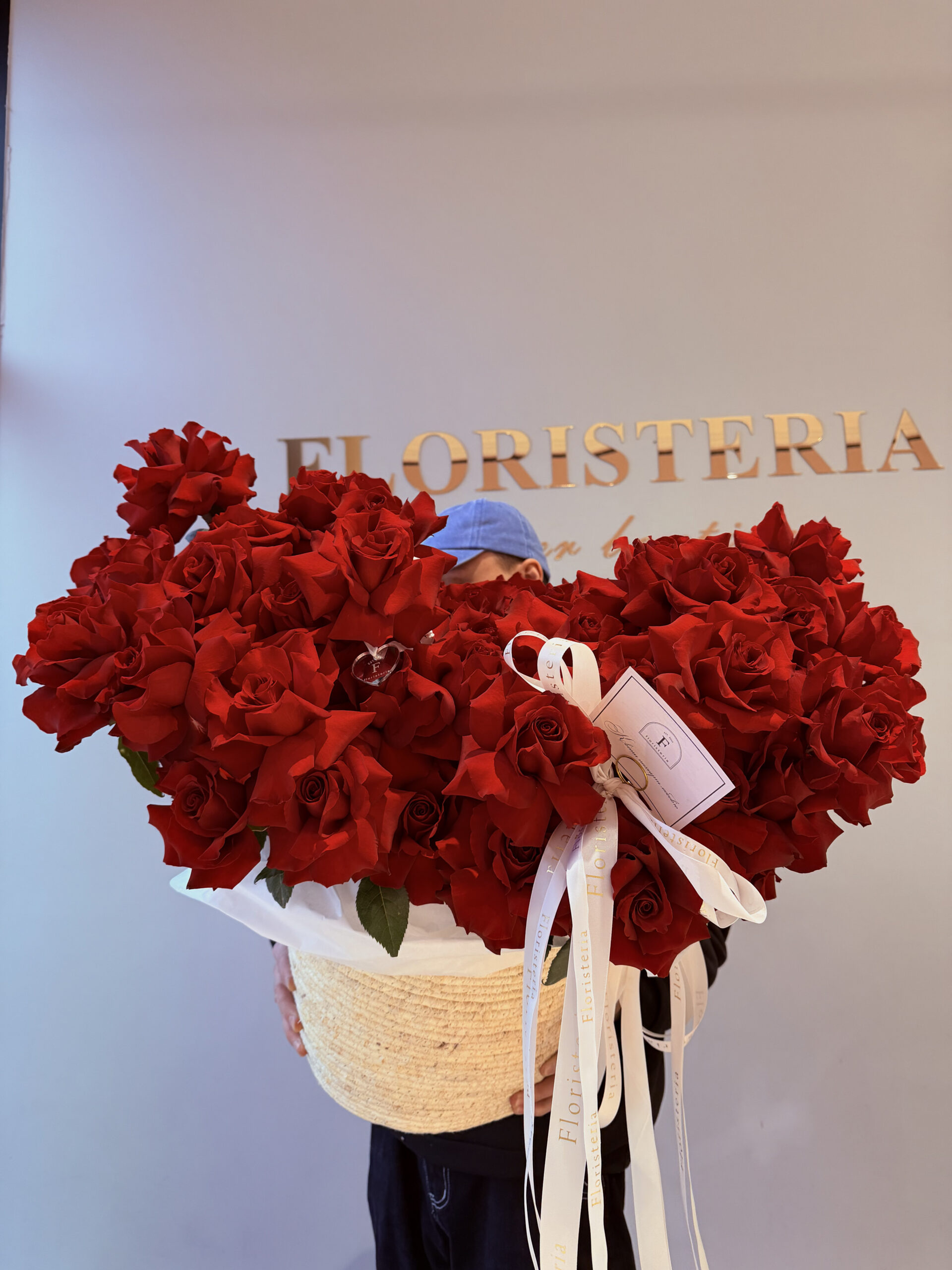 Будьте першим, хто залишив відгук на “Композиція з 75 червоних троянд в плетеному кошику”