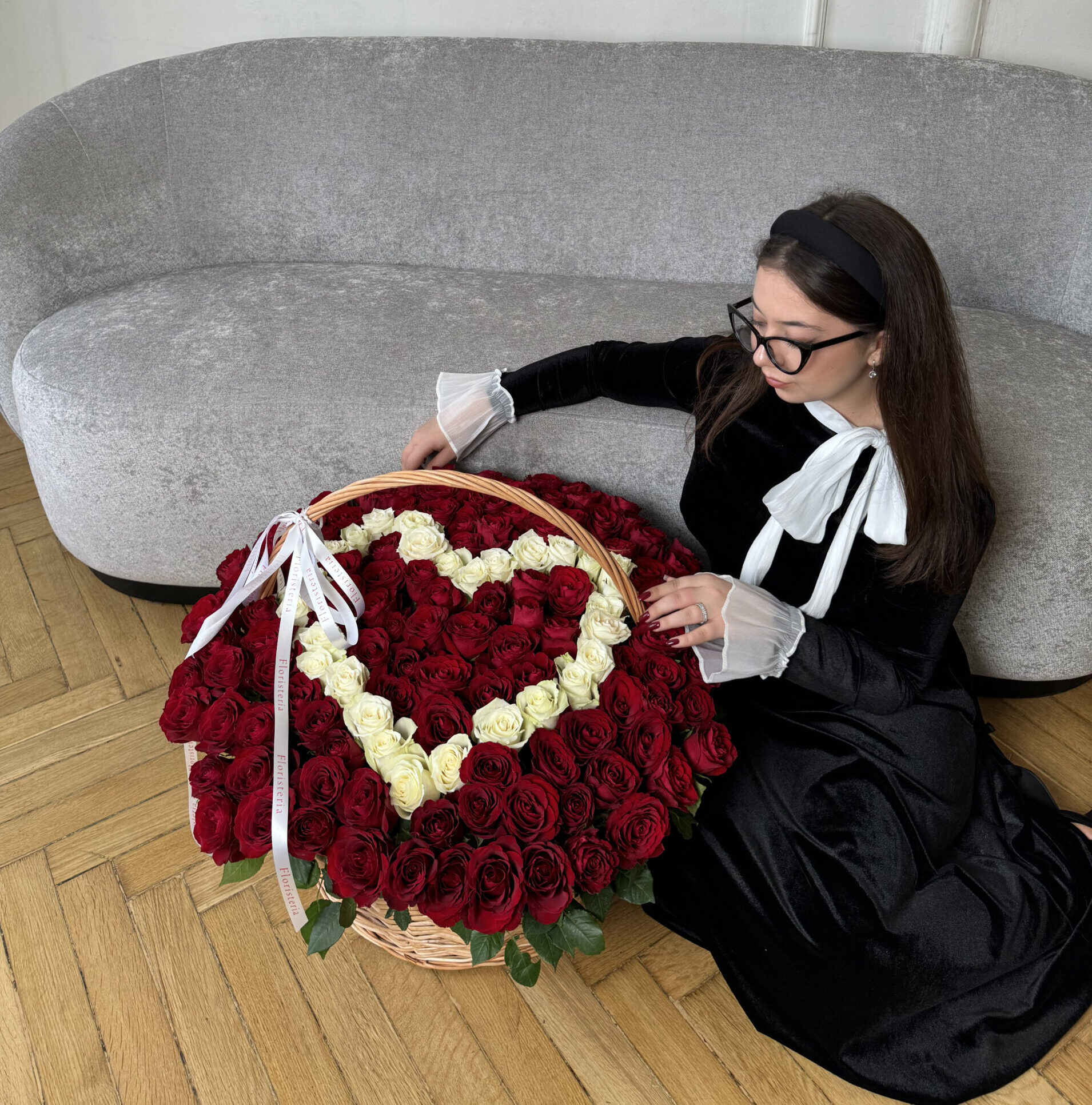 Корзина з серцем зі 151 троянди