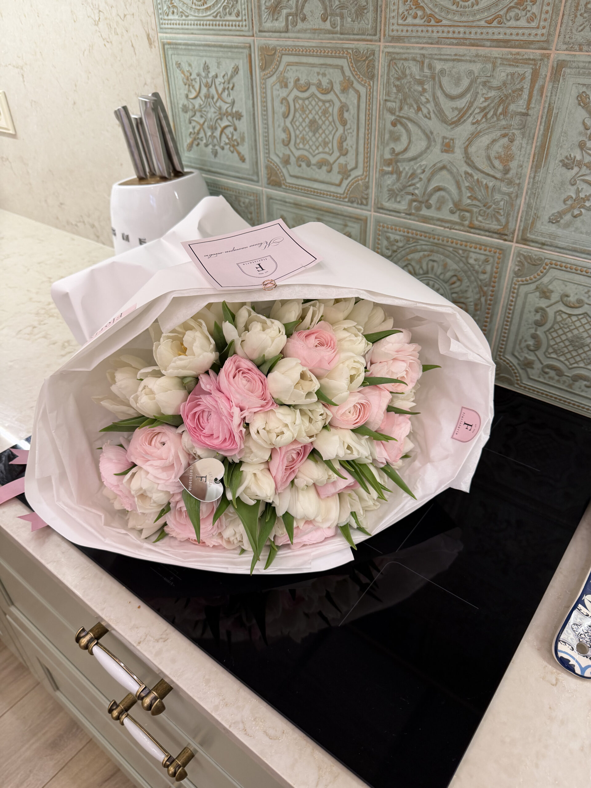 Будьте першим, хто залишив відгук на “Мікс білих тюльпанів та ранункулюсів”