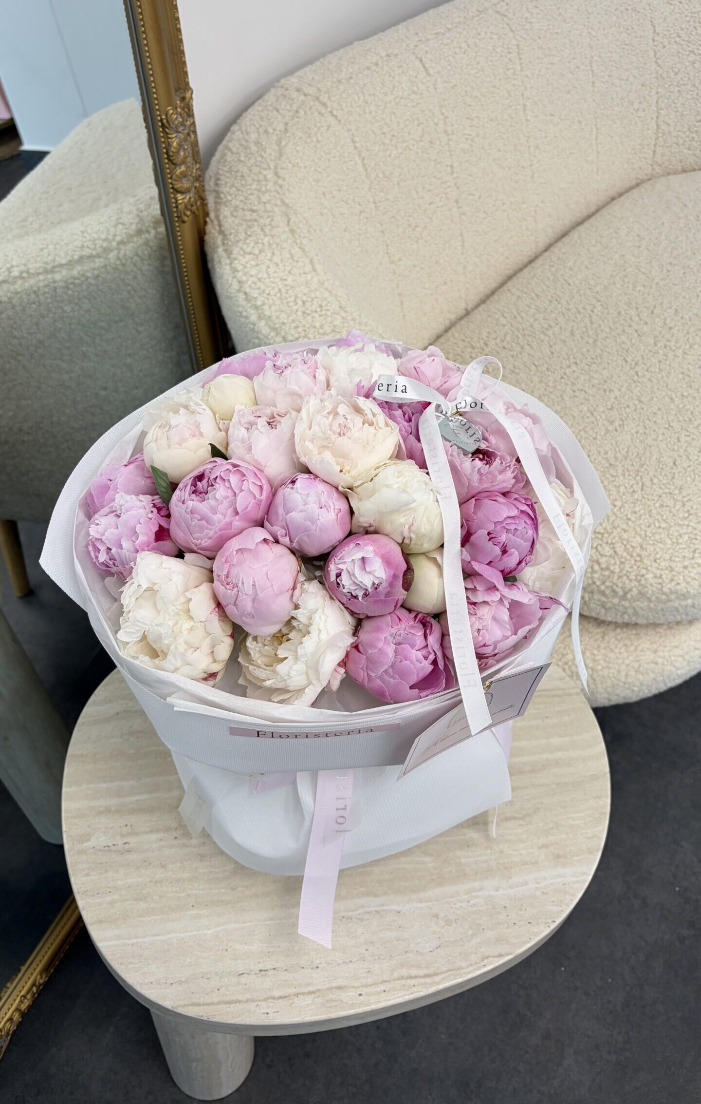 Будьте першим, хто залишив відгук на “Моно букет з білих та рожевих півоній”