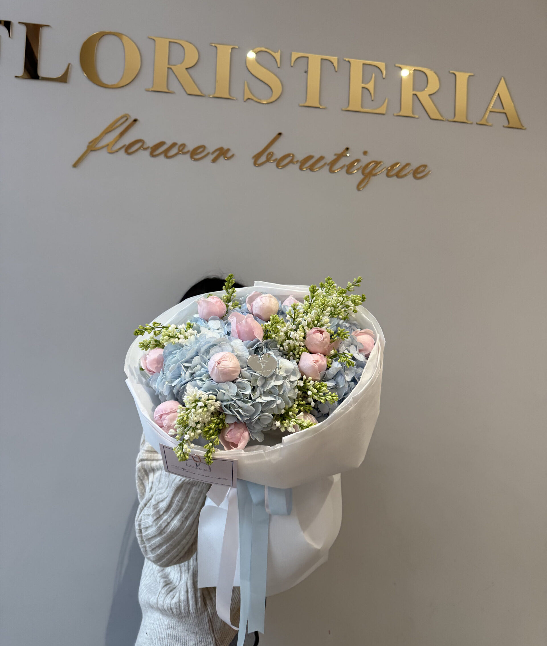 Будьте першим, хто залишив відгук на “Блакитно рожевий мікс з гортензій, садових троянд та бузку”