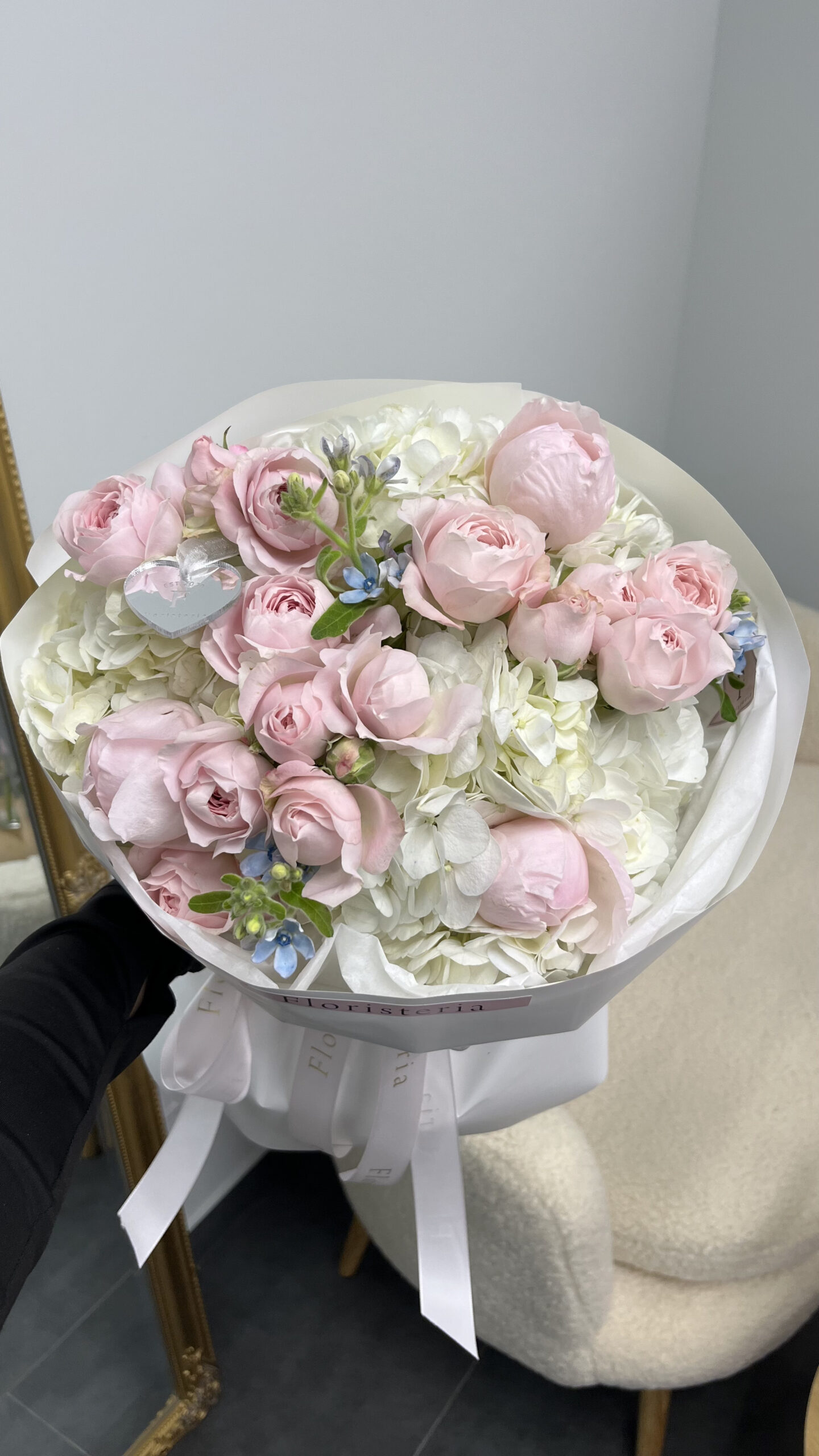 Будьте першим, хто залишив відгук на “Букет в ніжній колористиці з гортензій та садових троянд”