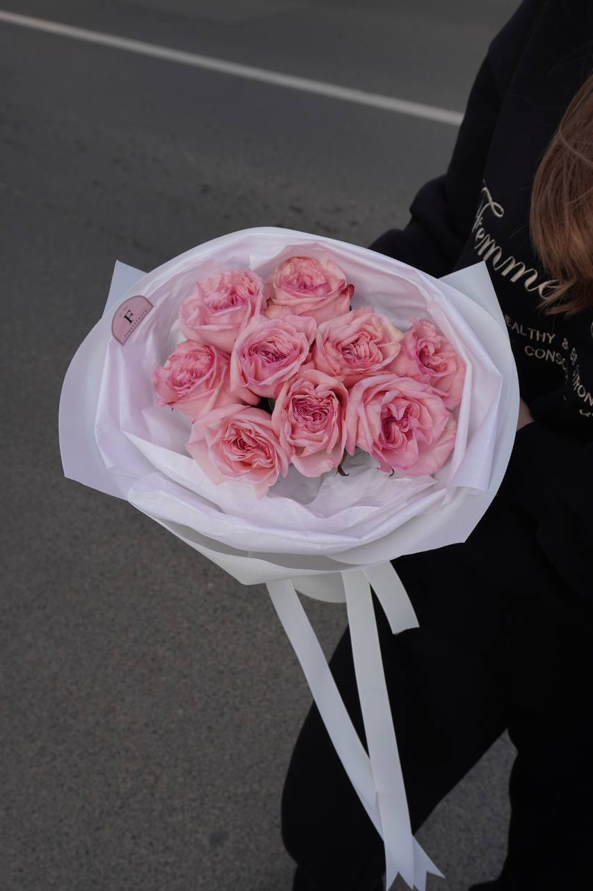 Букет з 9 піоновидних троянд Pink O’Hara