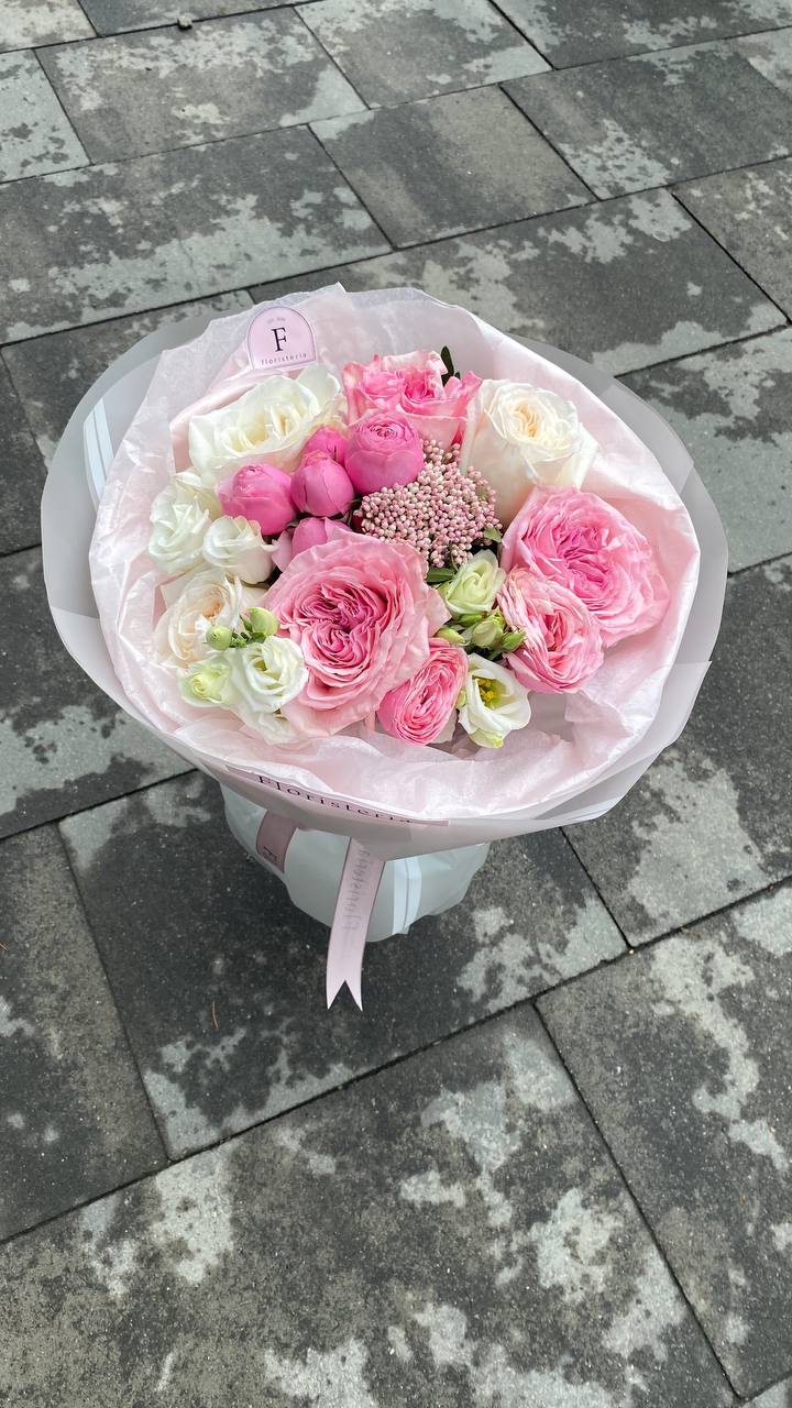 Будьте першим, хто залишив відгук на “Букет з піонодних троянд, еустоми та озотамнусу”