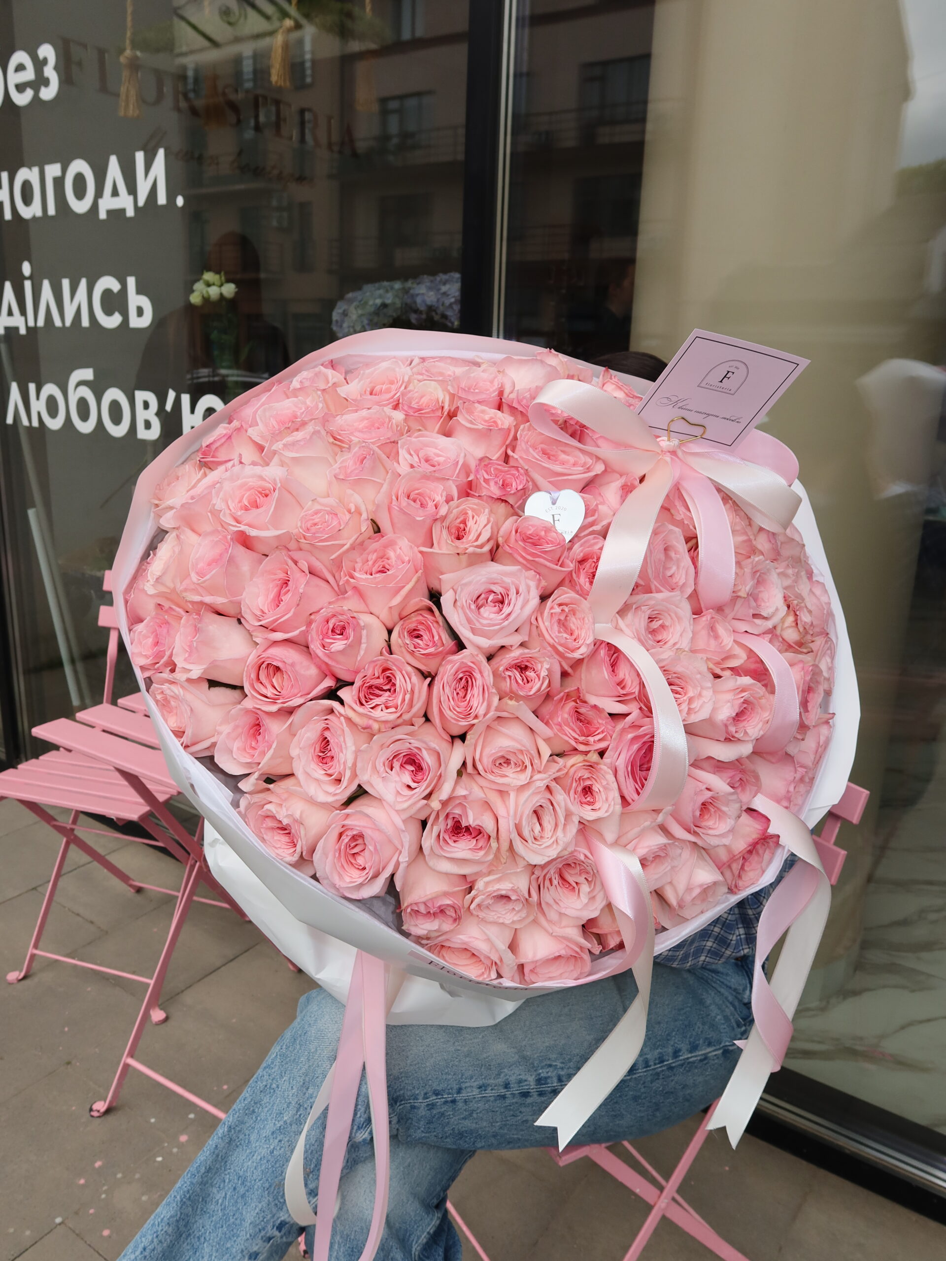 Букет зі 101 піоновидної троянди Pink O’Hara