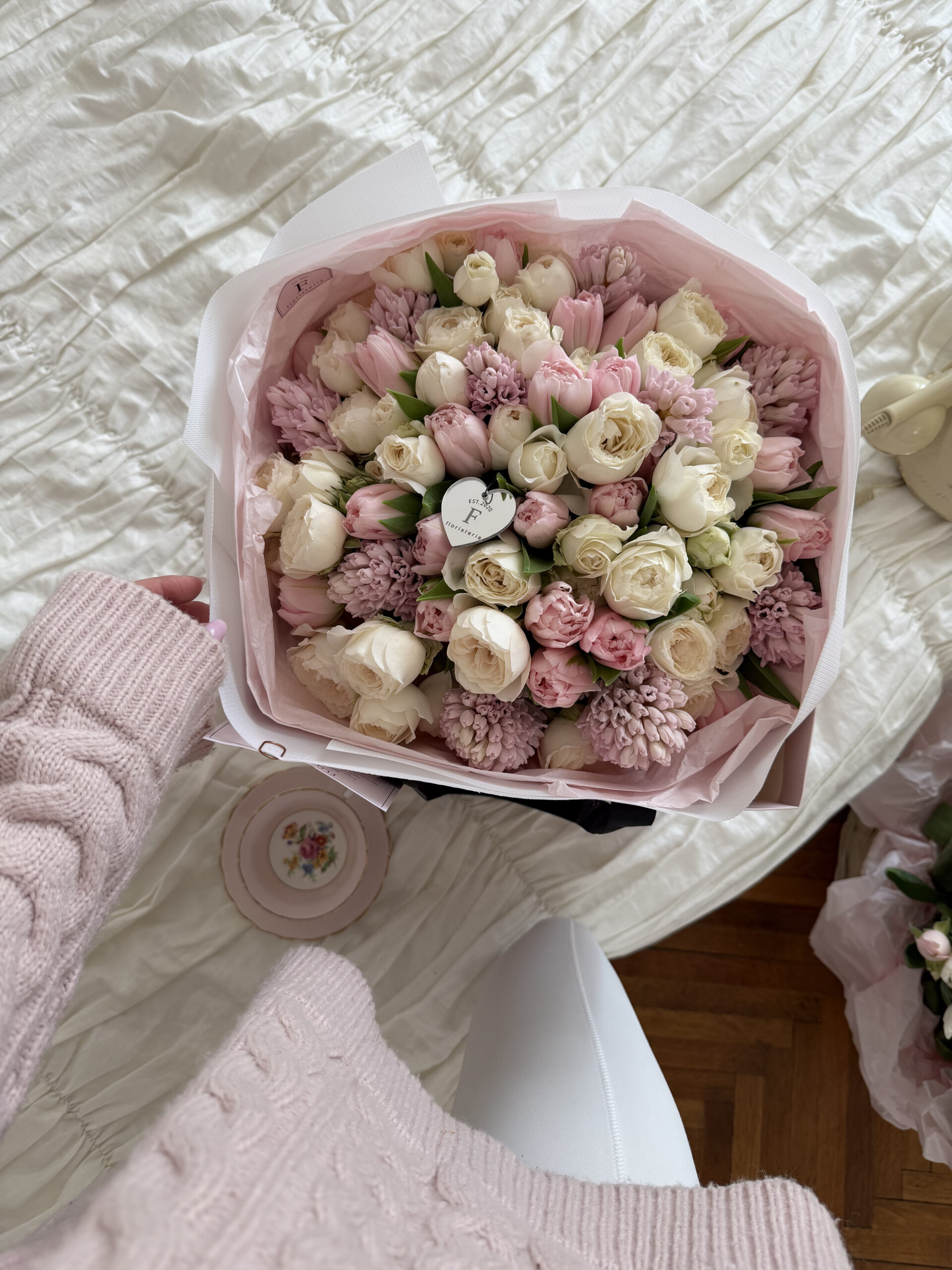 Ексклюзивний букет з кущових троянд, ароматних гіацинтів та преміальних тюльпанів Dreamer
