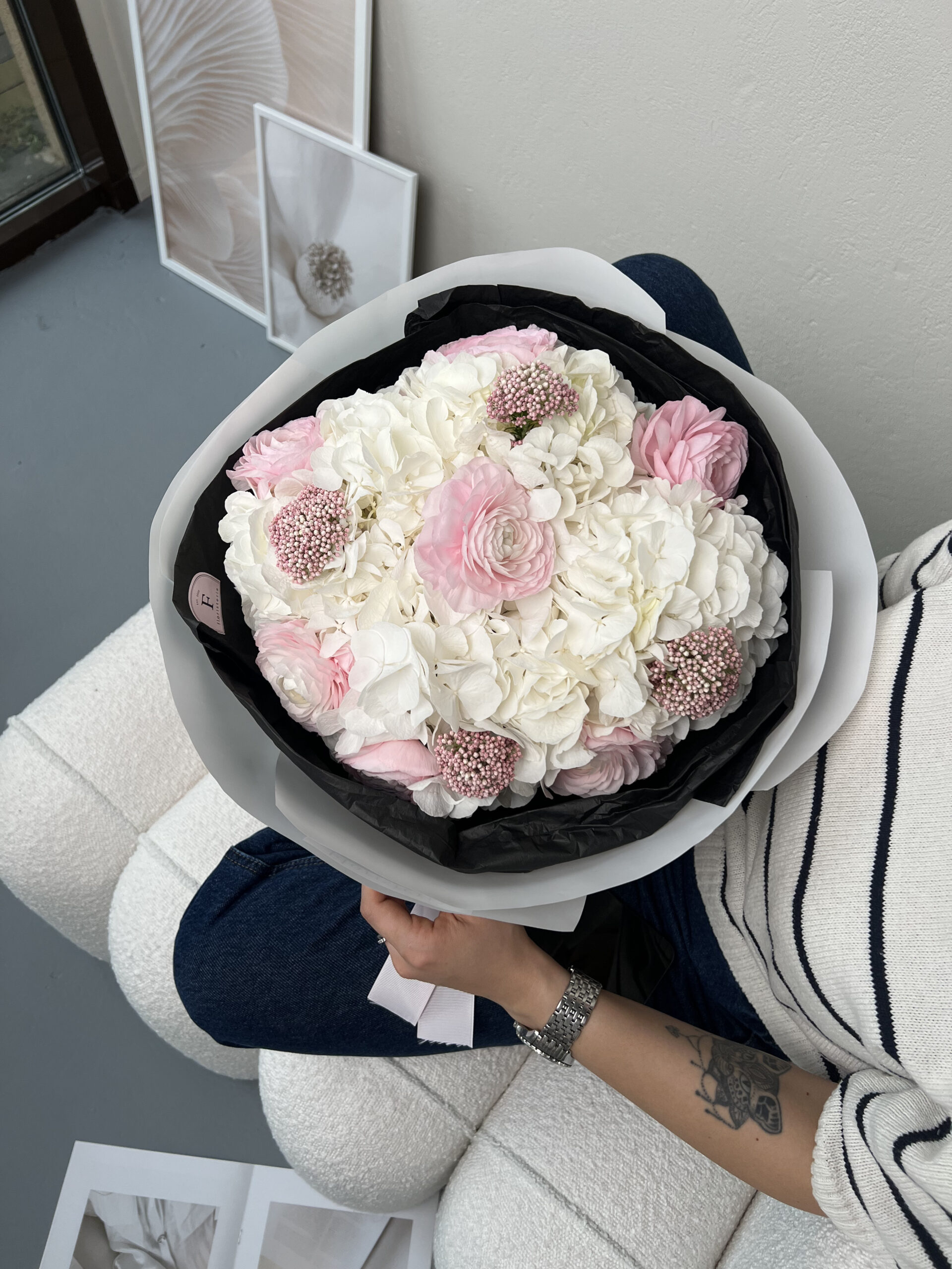 Мікс з гортензій, ранункулюсів та озотамнусу