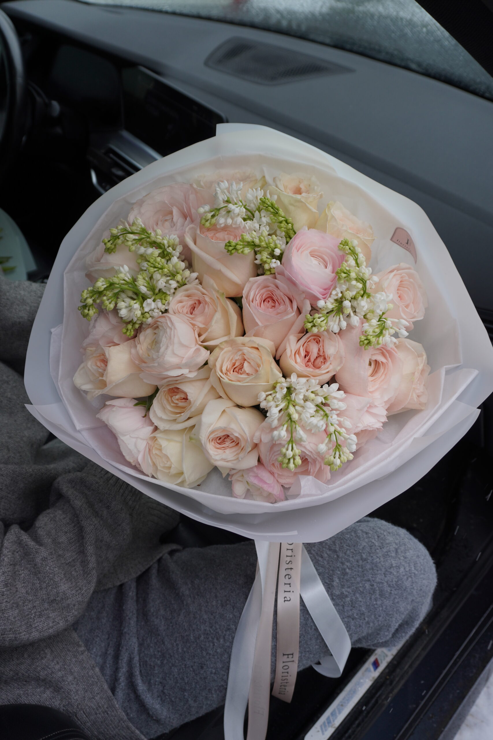 Мікс з ранункулюсів, парфумованих троянд та бузку