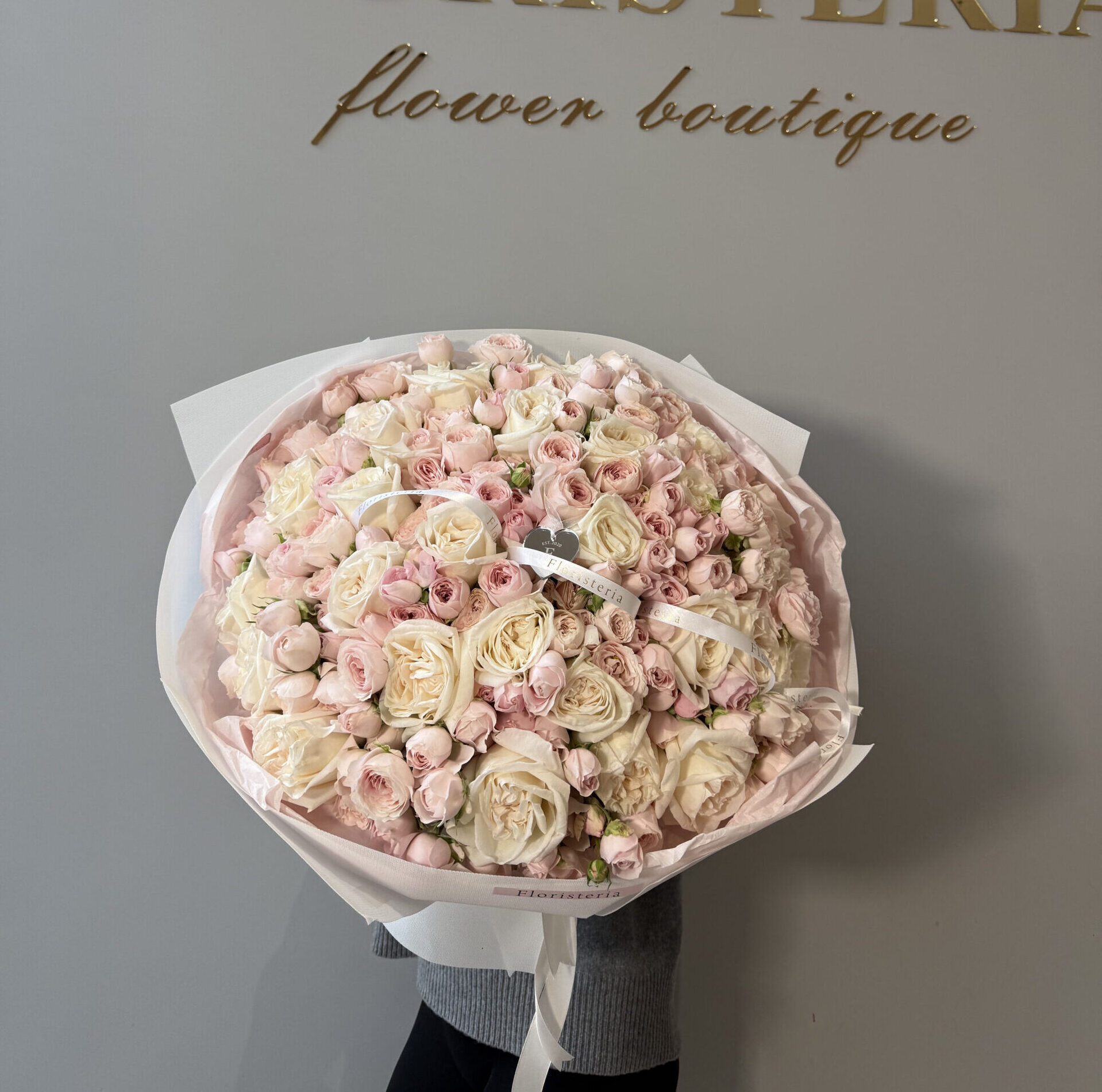 Ніжне поєднання кущових троянд Fairy Kiss та ароматної White O’Hara